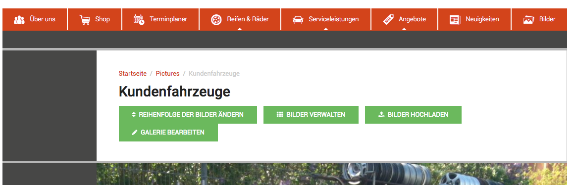 Beim Erstellen einer Bildergalerie werden nur Titel und evtl. ein Beschreibungstext eingegeben. Erst nachdem Sie auf Speichern klicken, werden Sie auf die Seite der Galerie weitergeleitet und haben dort die folgenden Optionen: