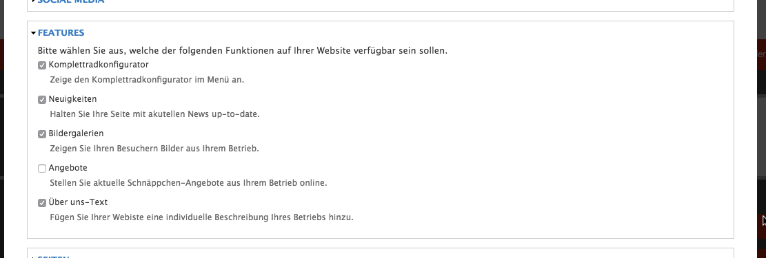 Sie können außerdem auswählen, ob auf Ihrer Website Like- und Share-Buttons für gängige Dienste (z.Zt. Facebook und Twitter) angzeigt werden sollen.